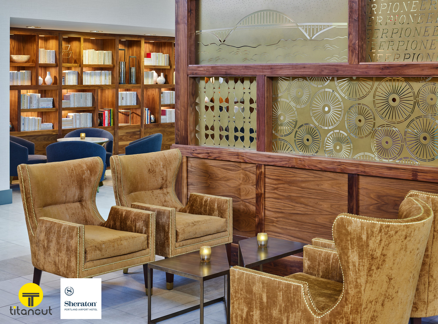 Titan Cut LLC is proud to be part of the beautiful transformation at the Sheraton Hotel located at Portland International Airport (PDX). For this project, we created custom metal panels that were seamlessly installed inside a warm wooden frame—an eye‑catching blend of natural texture and modern design.